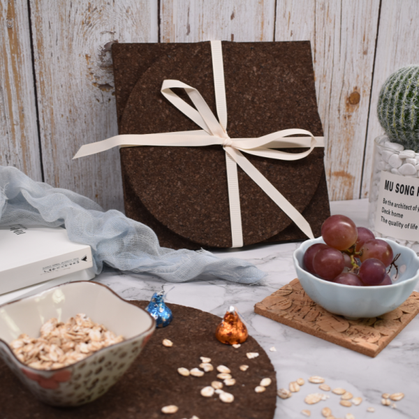 The round cork placemats, cork trivets are made of carbonized cork. It is eco-friendly, healthy, heat insulated, durability, recyclable, non-toxic. We can supply various sizes for your any requirement. Add a natural finish to your dining table with cork placemats. This round design makes a great place setting and will protect your table surface from marks and stains.